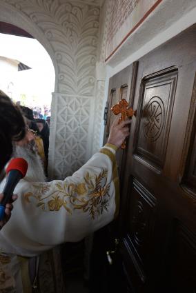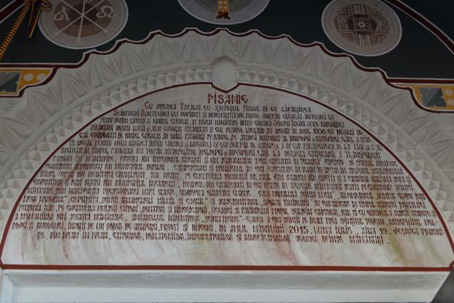 Lăcaşul de cult al Mănăstirii Eșanca fost stropit cu apă sfinţită şi uns cu Sfântul şi Marele Mir, iar în masa Sfântului Altar au fost aşezate moaşte. După aşezarea moaştelor în masa altarului, a urmat spălarea şi ungerea sfintei mese cu apă sfințită și cu mir, iar icoane ale celor patru evanghelişti au fost prinse de masa altarului, câte una la fiecare colţ. Slujba a continuat cu punerea unui acoperământ subţire pe sfânta masă, strânsă de altar cu o bandă tricoloră și pecetluită, după care masa altarului a fost împodobită cu un alt acoperământ mult mai bogat, precum și cu celelalte obiecte sfinţite, printre care antimisul, Sfânta Evanghelie, chivotul şi lumânări. După sfinţirea altarului şi împodobirea lui, întreaga biserică a fost cădită, iar ierarhii prezenți au uns cu Sfântul Mir cei patru pereţi ai bisericii şi sfintele icoane, făcând pe fiecare semnul crucii cu mir.